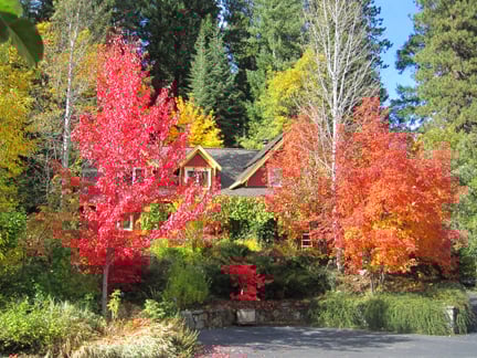 75-100% — Plumas County. Bigleaf Maple are glowing yellow in the forests and towns of Plumas County.