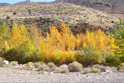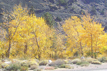 50-75% — Antelope Valley (Walker, Coleville & Topaz, 5000′ – 5300′). Cottonwoods are turning from the lime green to yellows. Most are 50/50 with some completely yellow. Some oranges are starting.