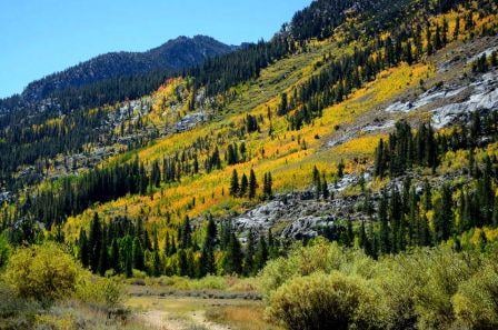 0-15% – Forks, Four Jeffries, Big Trees & Bishop Park Camgrounds (8,000 ft – 8,300 ft) – No yellow to speak of in these areas but the aspen are certainly turning to lime green in most of these areas. These areas tend to peak quite a bit later than the higher reaches of the canyon so look for these areas to start looking their best around the end of the month or early October depending on the weather.