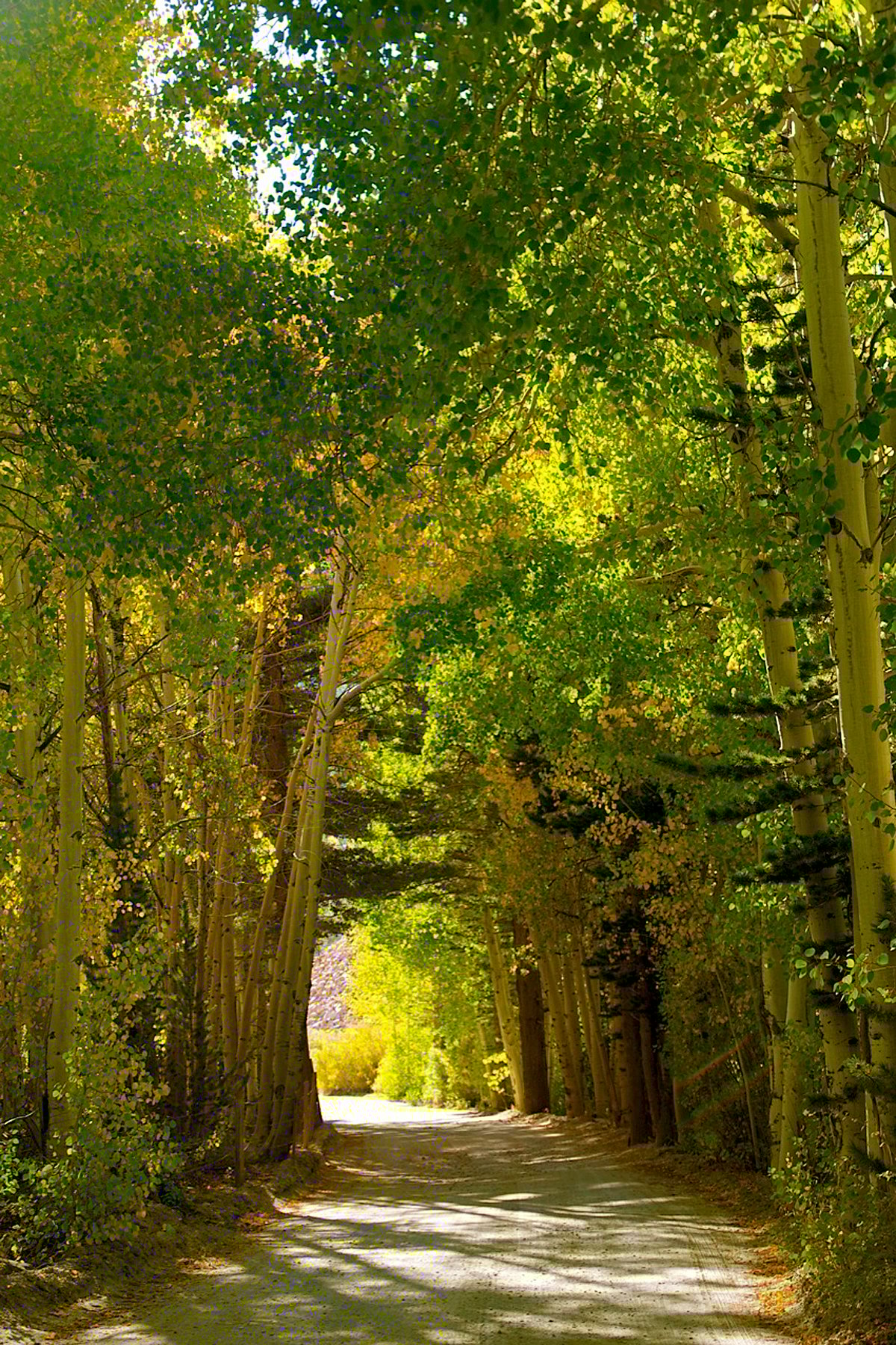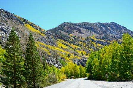 15 – 30% – Overall Conditions below 8,500 ft – The vast majority of aspen below 8,500 ft are still mostly green, though a lot of lime green is showing with some pockets of yellow, especially on the So. Fork Bishop Creek above Bishop Creek Lodge.