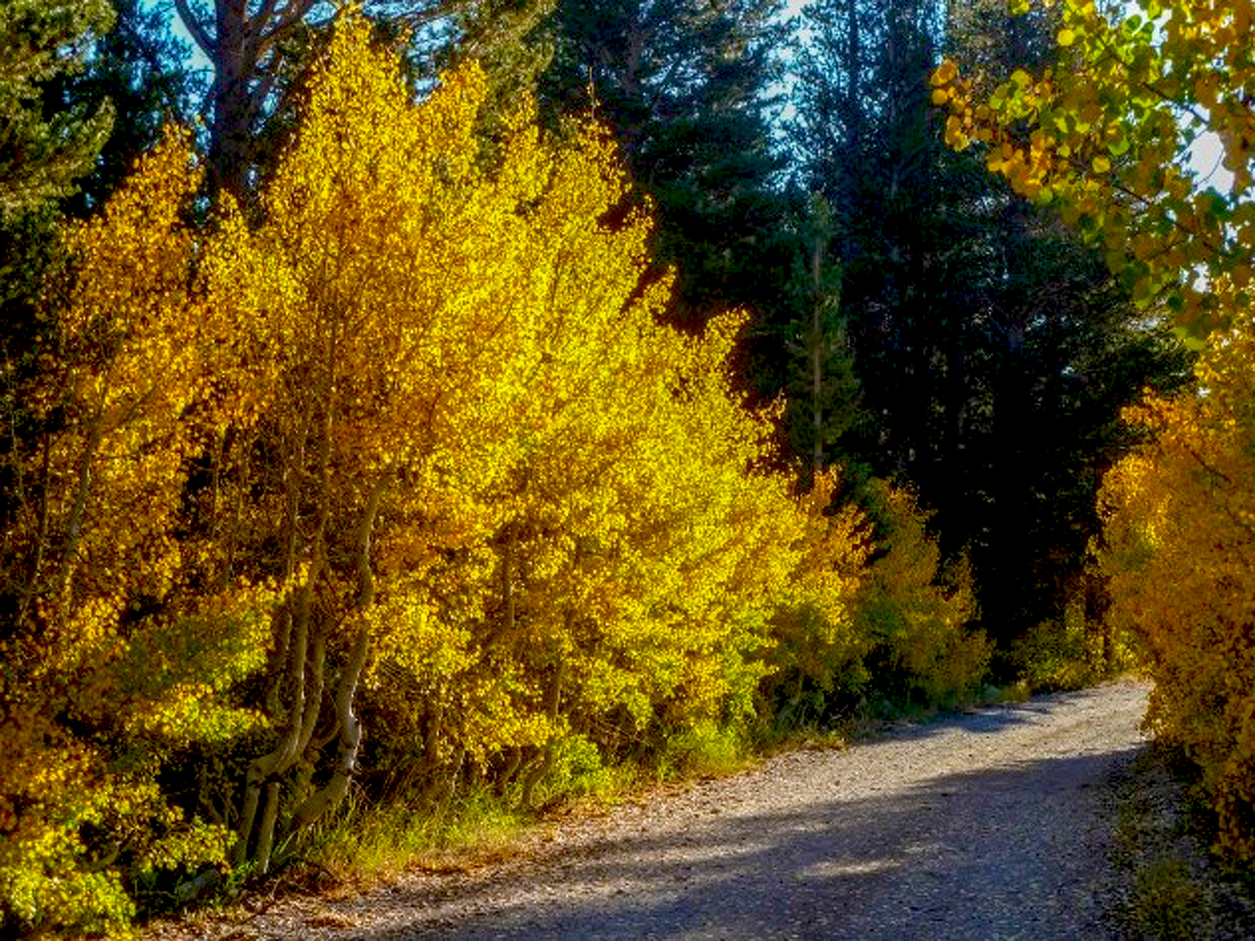 GO NOW! – 50- 75% – Upper Rock Creek Road – The upper reaches of Rock Creek Road, including around Rock Creek Lake are “quite breathtaking with beautiful red, orange and gold aspen.”