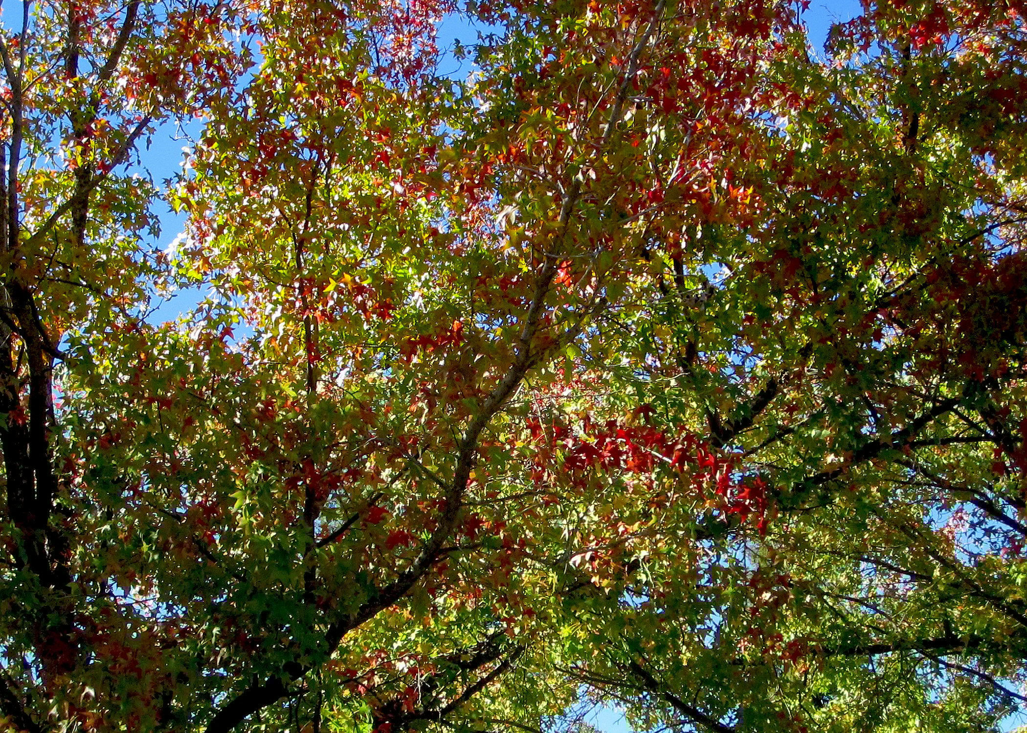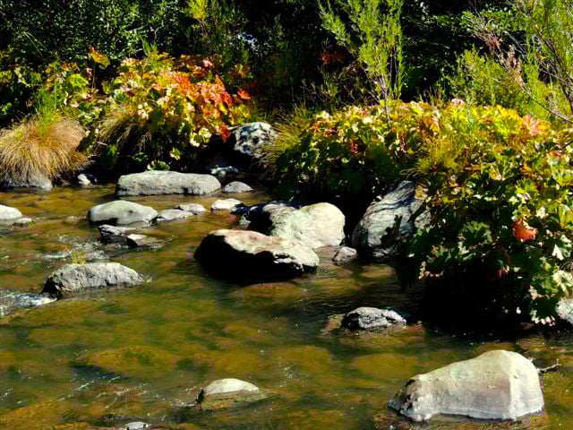 15 – 30% – Butte County – It’s still too early to make a trip to Chico for fall color, though it is always a great place to visit. For the moment, Chico is mostly green as seen in this photo taken at Bidwell Park. The best color in Chico will be seen there, on the Chico State University campus, along the Highway 32 corridor, and up the Highway 99 corridor in mid October. Chico is known as a city of trees with a spectacular mature canopy in its parks and along its boulevards. The agricultural fields and orchards surrounding Chico have impressive displays of nut and fruit trees in mid October. Here are some upcoming Chico events: