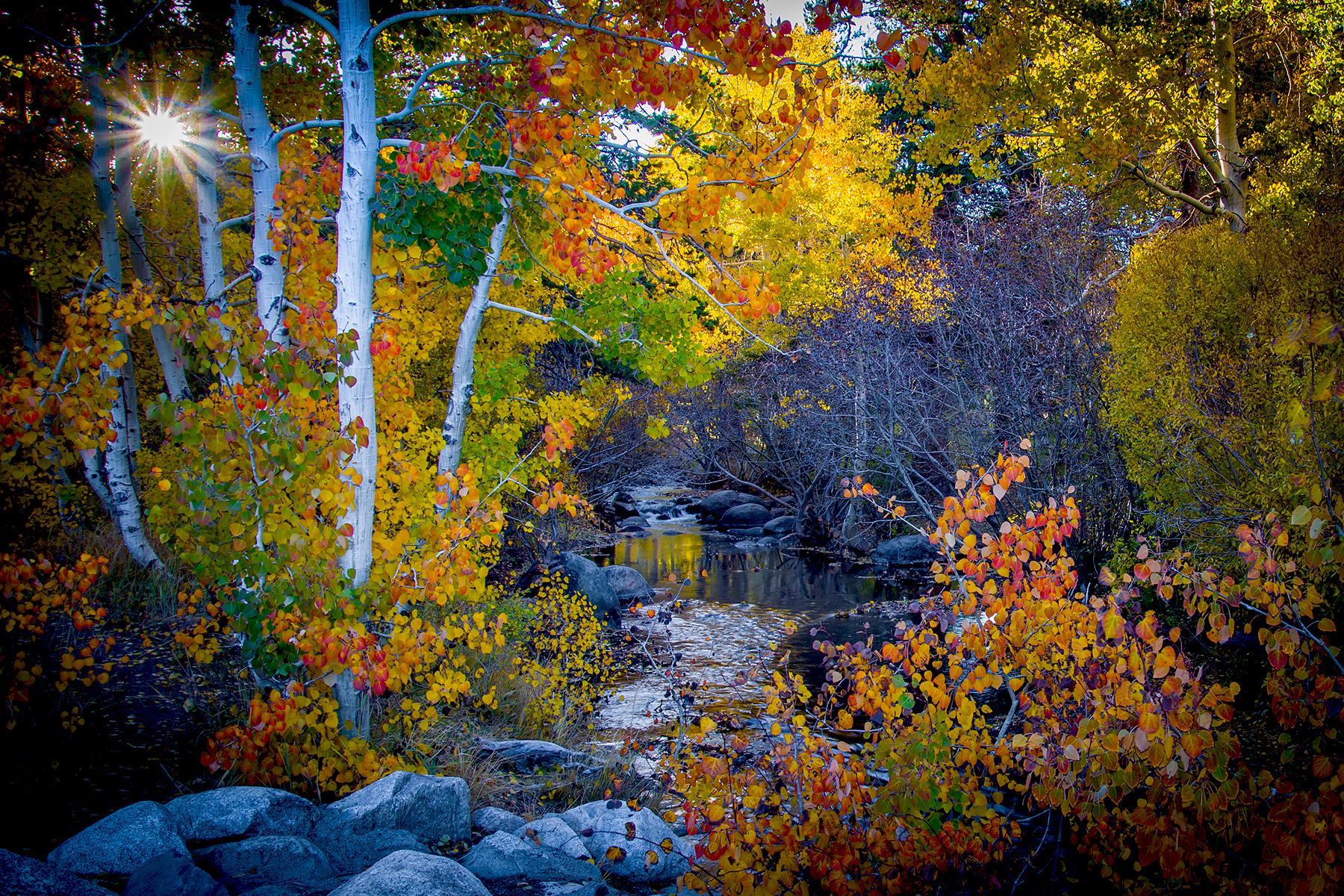 Color spotter Edina Ingram reports that the Mammoth Lakes area is closer to full peak in lower elevations. Jaganath Achari seconds her assessment and reports, after visiting Mammoth and June Lakes this past weekend that, “it was busting in colors all over the place.”
