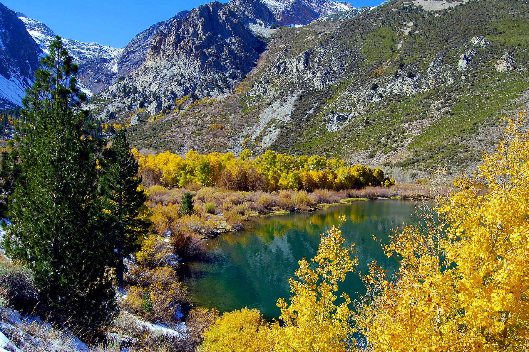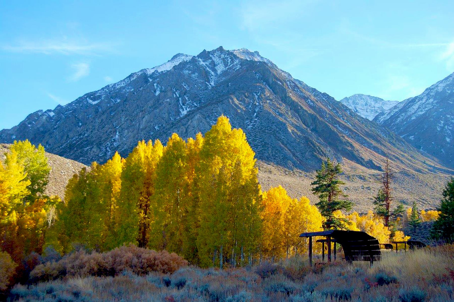 GO NOW! – 75 – 100% – Convict Lake – The entire canyon is at peak. There are lots of spectacular colors to be seen on the ride to the lake, including intense yellow, brilliant orange and, recently, traces of burnt Sienna. This is about the last weekend to see full color at Convict Lake, as large sections along the upper creek above the lake are dropping their leaves. If you’re going, take advantage of these deals and offers: