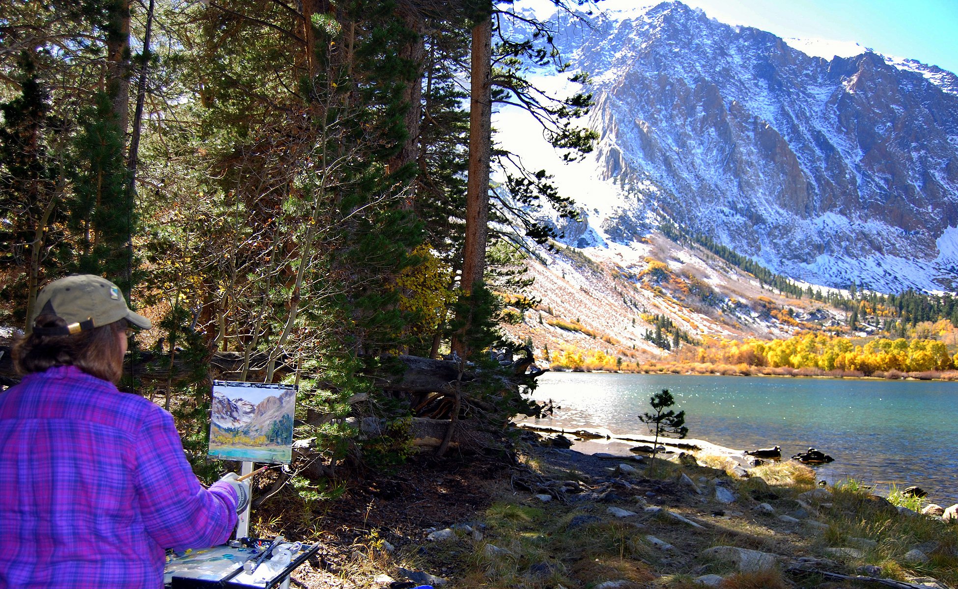 GO NOW! – 75 – 100% – Parker Lake – 100% – This small, but majestic lake, attracts many young families, a few anglers, photographers and – this past weekend – even award-winning artist, Therese LaChance Ely, well-known for her “Sierra-scapes.”