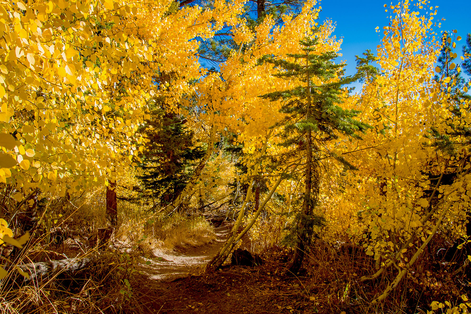 Edina Ingram reports, “the weather in Mammoth Lakes remains gorgeous. With daytime temperatures in the mid 60s: crisp air, bright blue skies and a forest of yellow, now is a perfect time for sightseeing, hiking or mountain biking.” The Mammoth Lakes area is in full peak at lower elevations and past peak at higher elevations.