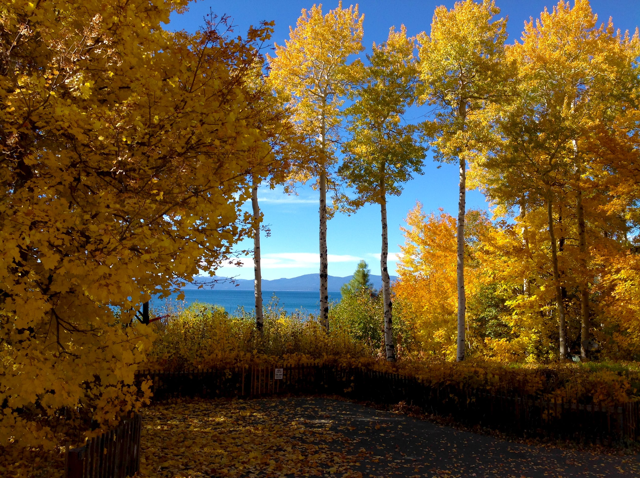 GO NOW! – 75 – 100% – Lake Tahoe – Cottonwood and aspen are still dressed in gold along the shore of the lake, though each day more leaves flutter to the forest floor. Linnea Wahamaki sends these snaps of Tahoe City and Donner Summit.