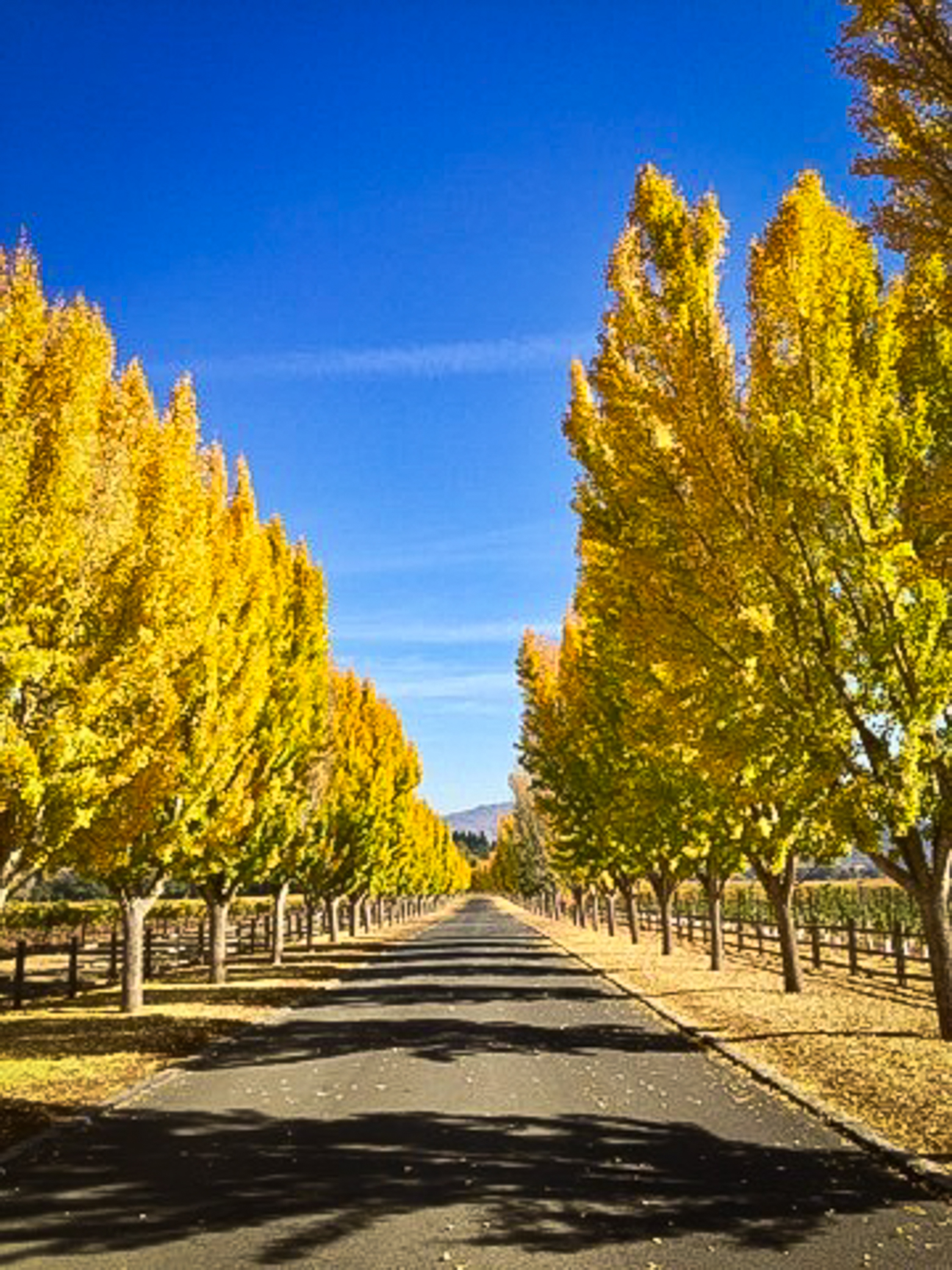 Charles Hooker of Napa was out for a bike ride today and passed by the boulevard of Gingko trees leading to the Far Niente Winery in Oakville, sending back these camera phone snaps of that gorgeous road.