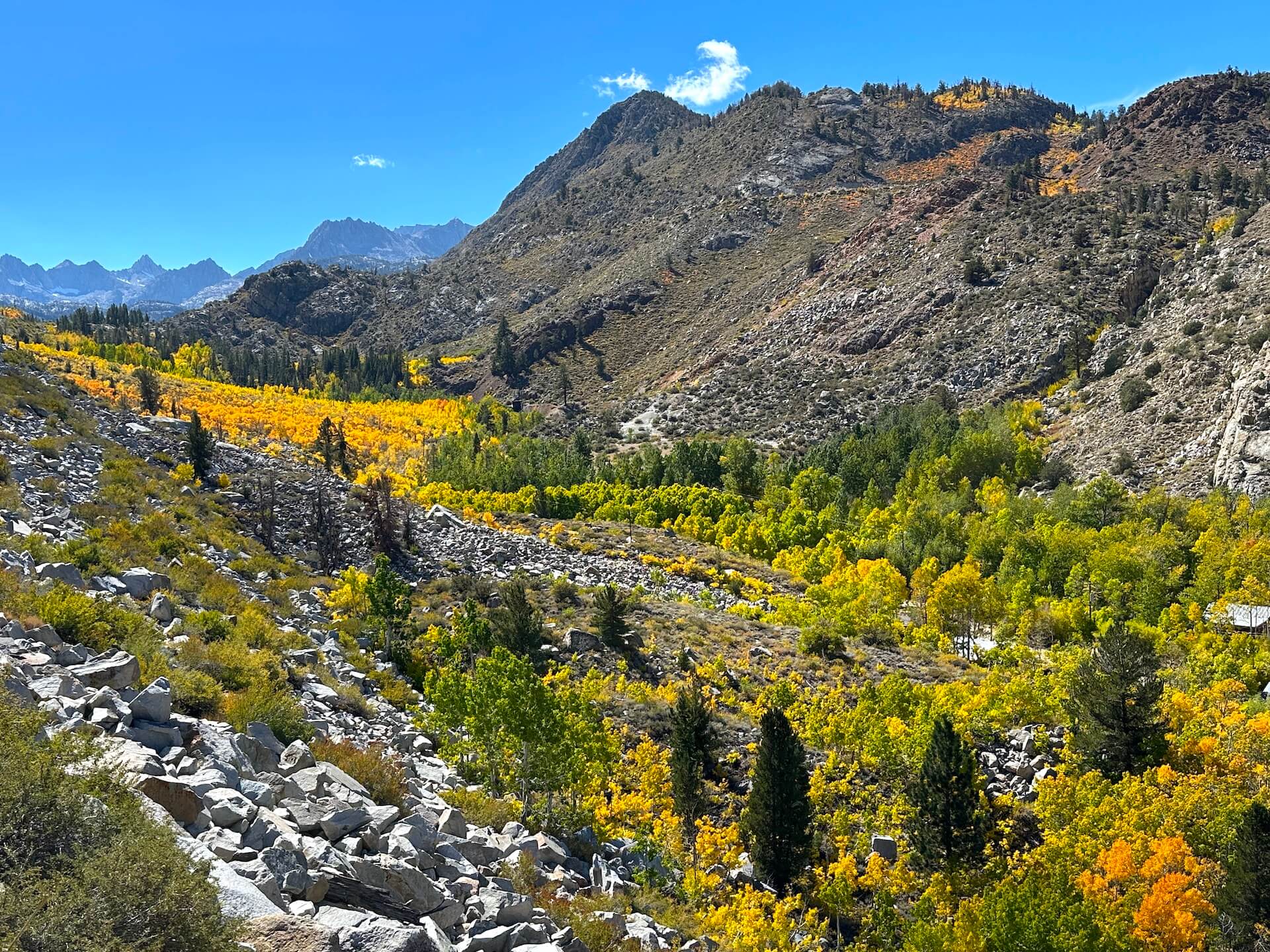 - Mist Falls and the Groves Above Bishop Creek Lodge (8,350′) – 50-75% – Near Peak (Go Now.) (Closer to 50%)
