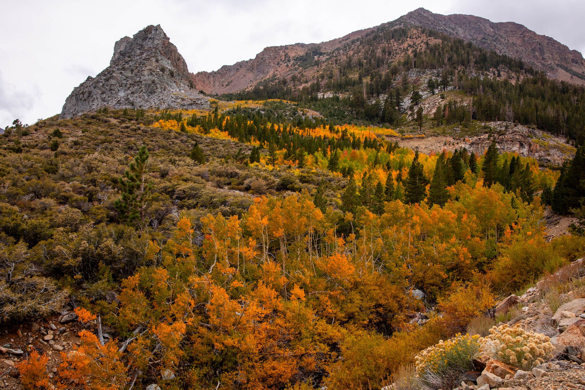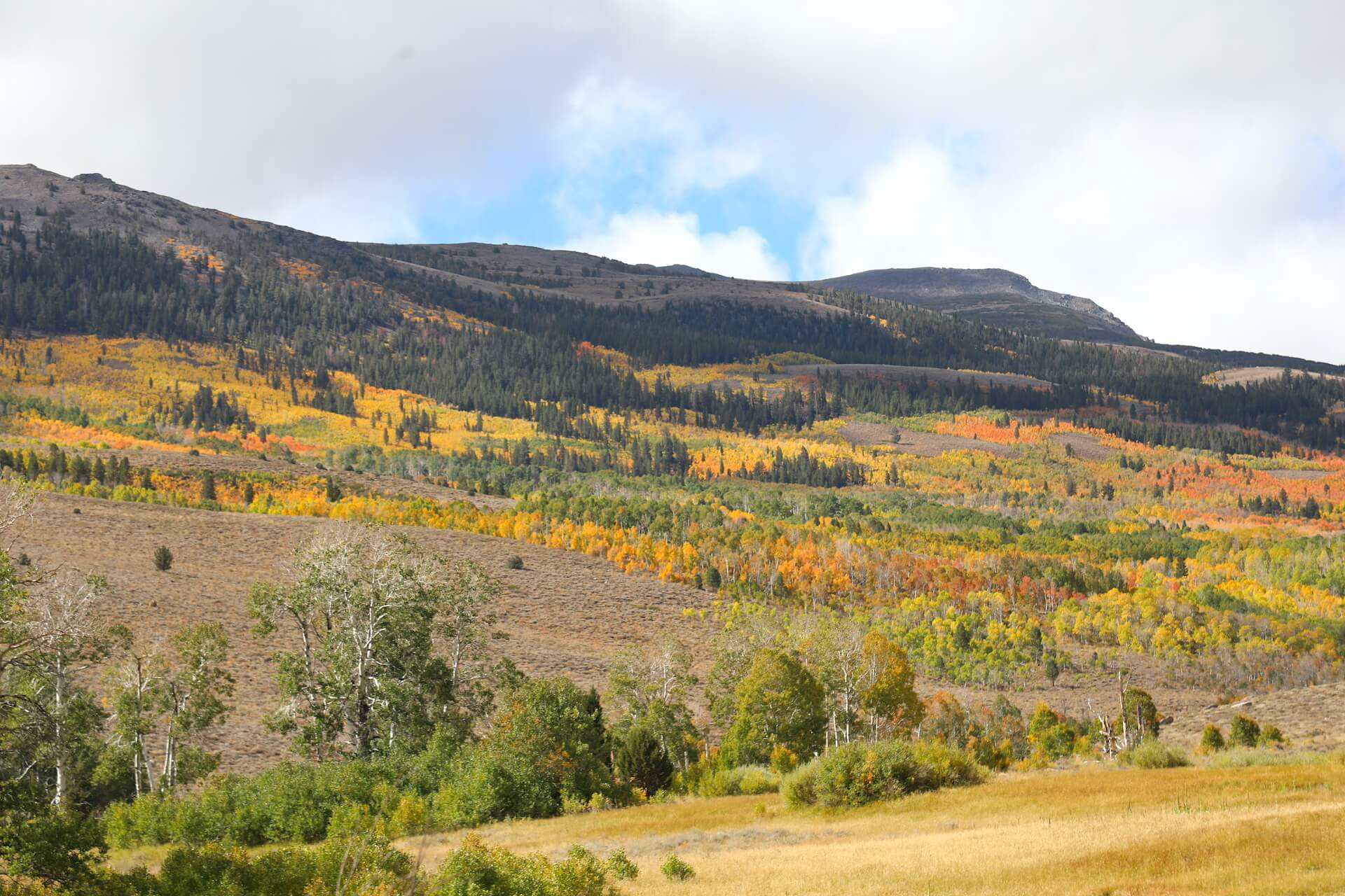 West Walker River, Walker, Coleville & Topaz (5,200′) — 10-50% Patchy. This area is just beginning to show fall color! Glimmers of yellow or starting to spread around the river and the cottonwoods near Topaz. This Northern Mono County region generally peaks later or last, but the cooler weather this week could speed things along, and we’ll update next week with any progress asap.