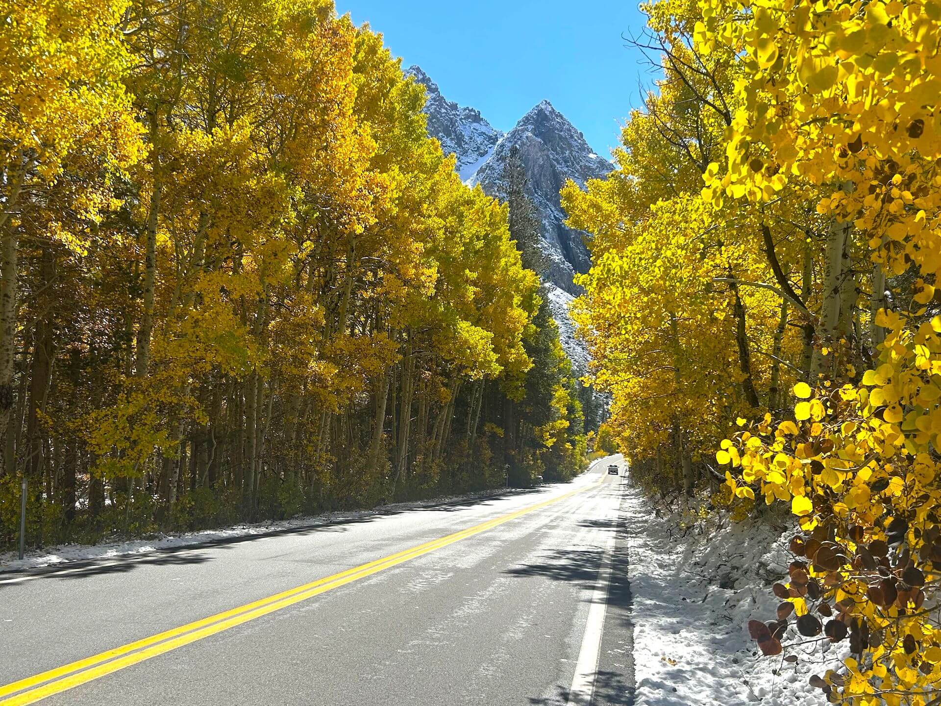 The colors are truly putting on a fall show and with the recent snowfall, driving through the loop is a magical blend of winter and fall.