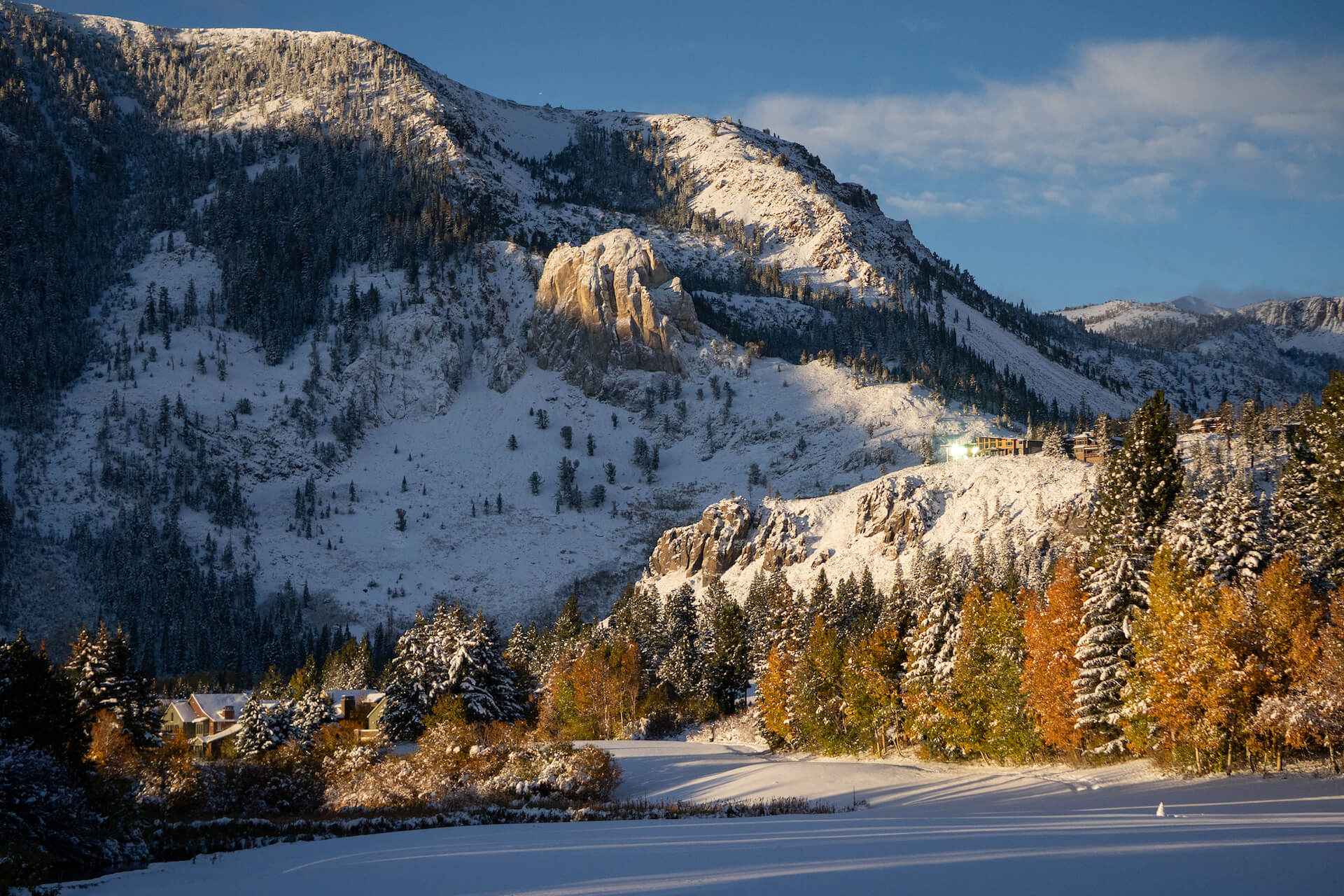 The countdown is on to opening day at Mammoth Mountain in Mammoth Lakes, but until then you can enjoy a beautiful blend of winter and fall magic.