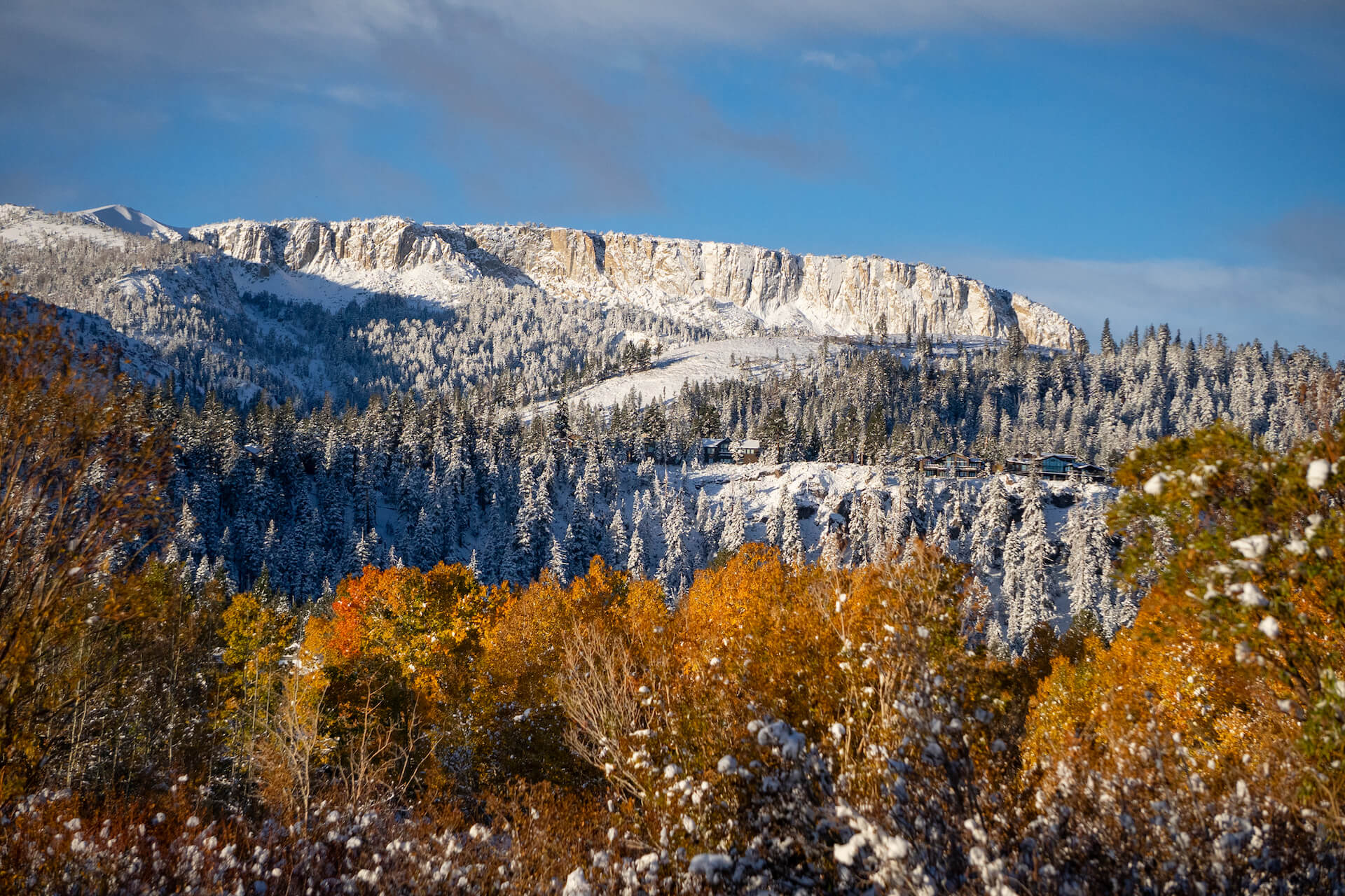 According to our friends at Mammoth Lakes Tourism, “The recent snowfall brought a beautiful blanket to town, Mammoth Mountain and the Lakes Basin. The colors are still hanging on and pockets of snow are expected to remain in high elevations through the weekend.”