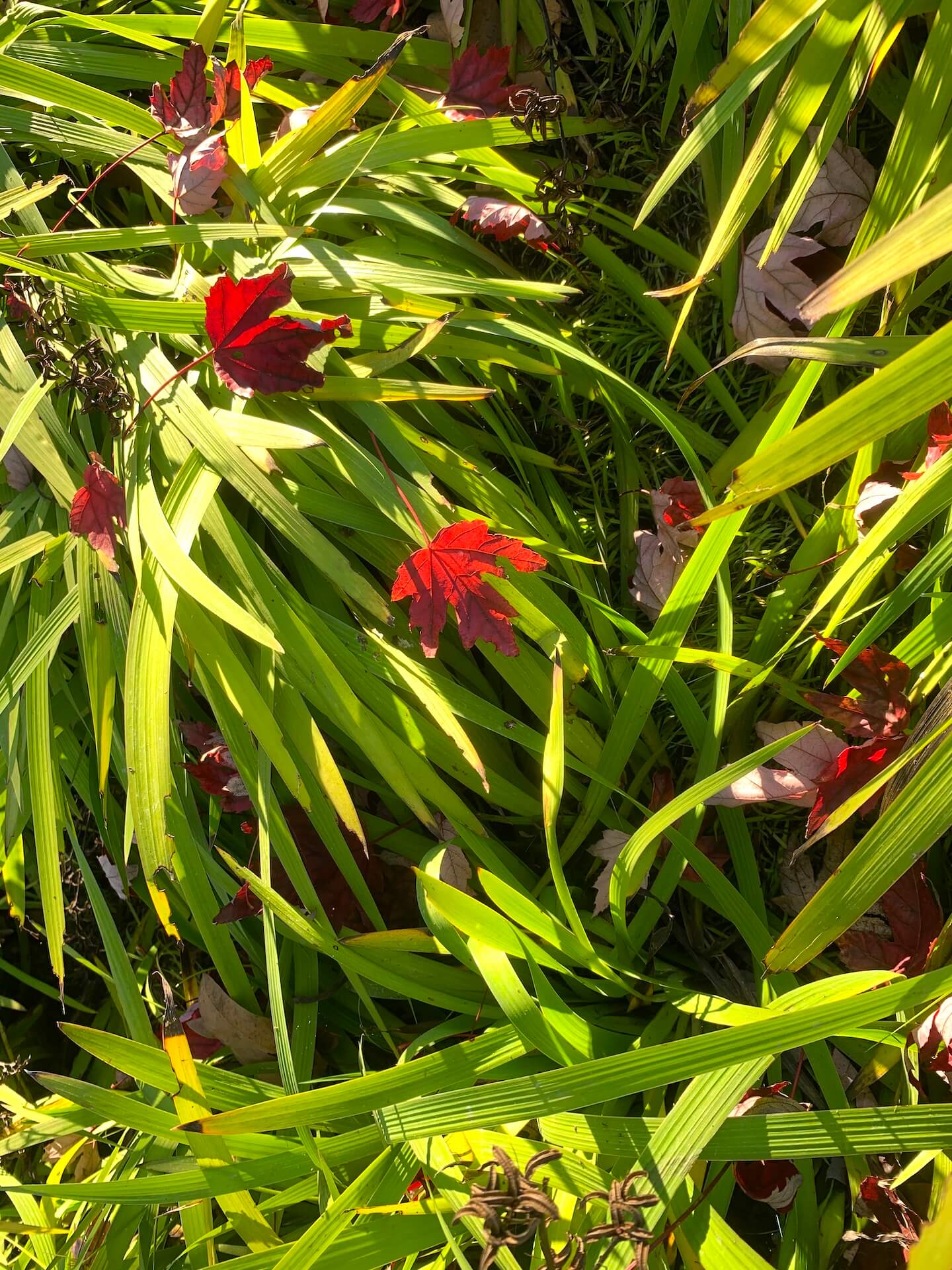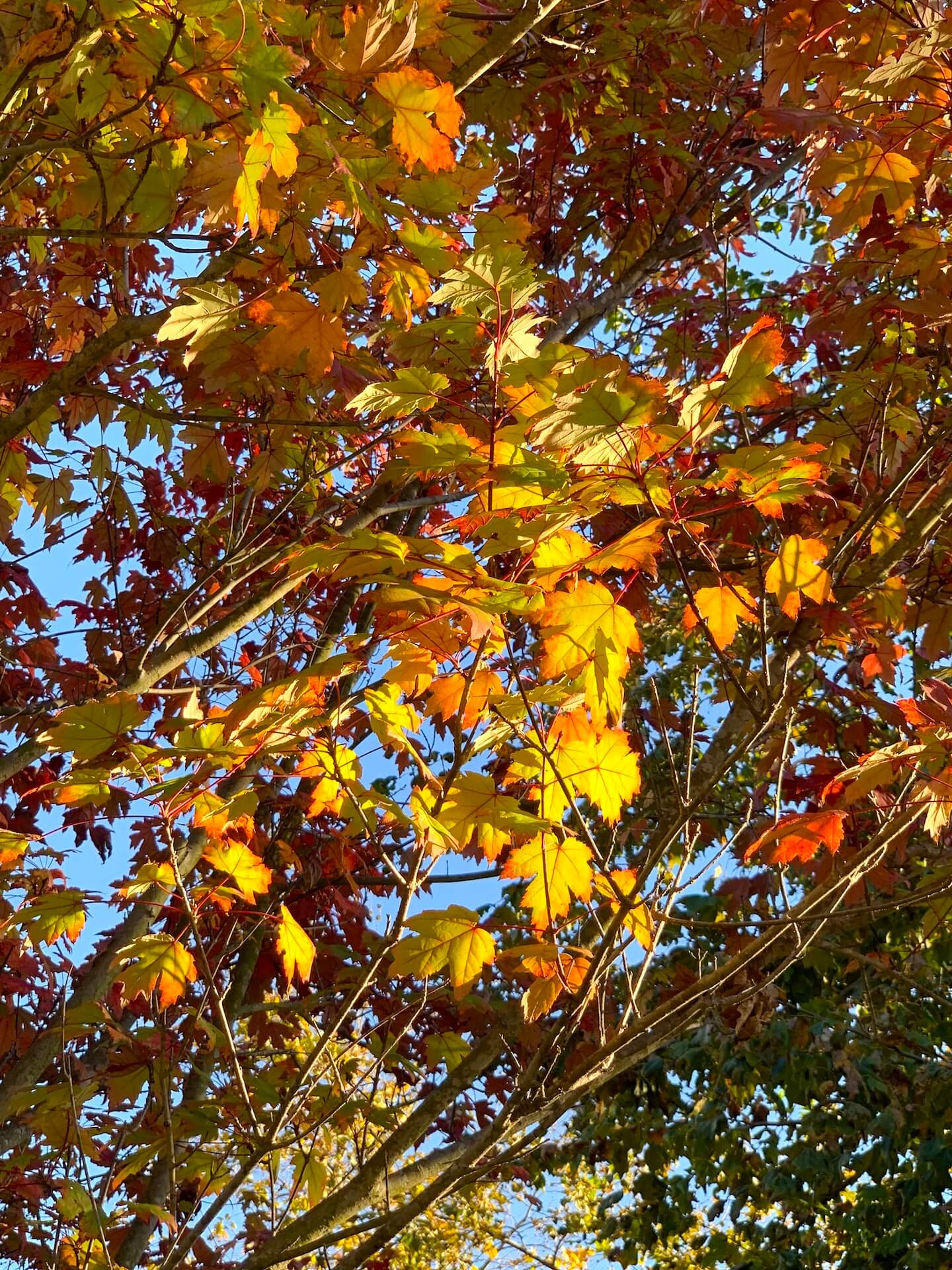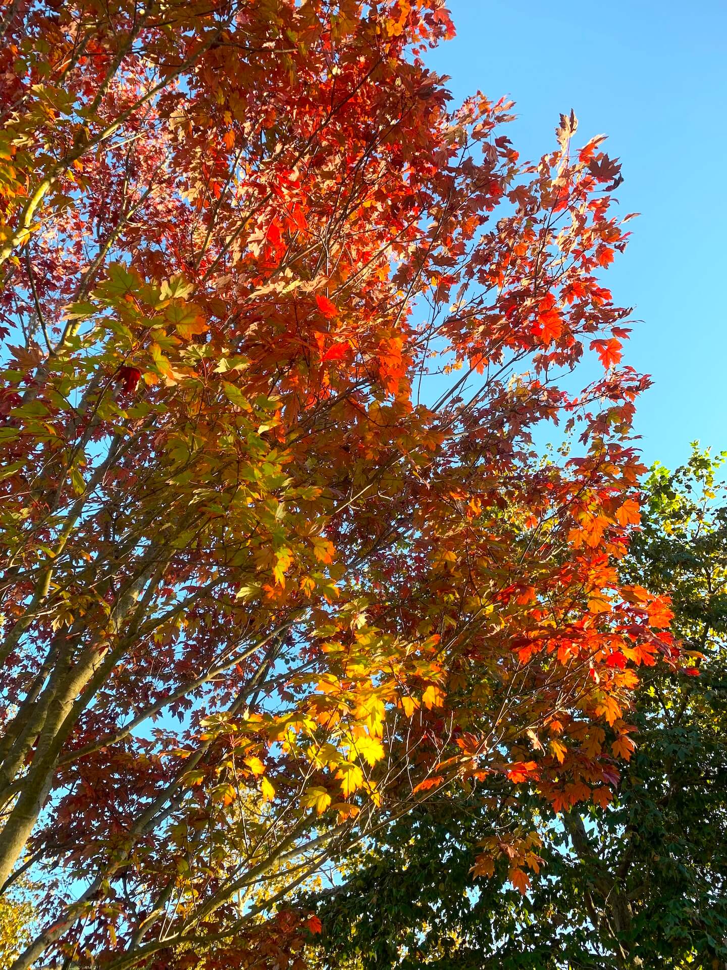 Oct. 17 – “This beautiful crimson red leaves tree stood there surrounded by the other trees with golden or green color leaves, almost like a King or Queen. The colors became even more vivid as I moved to the other side facing the sun. “