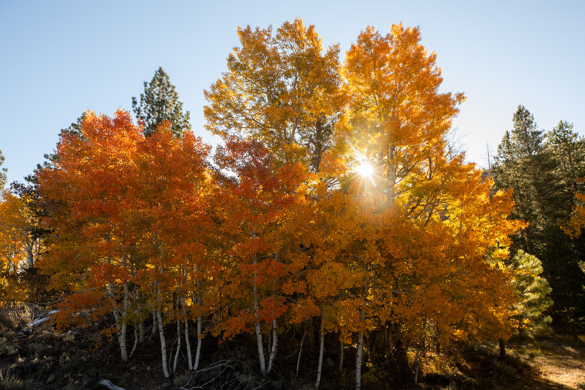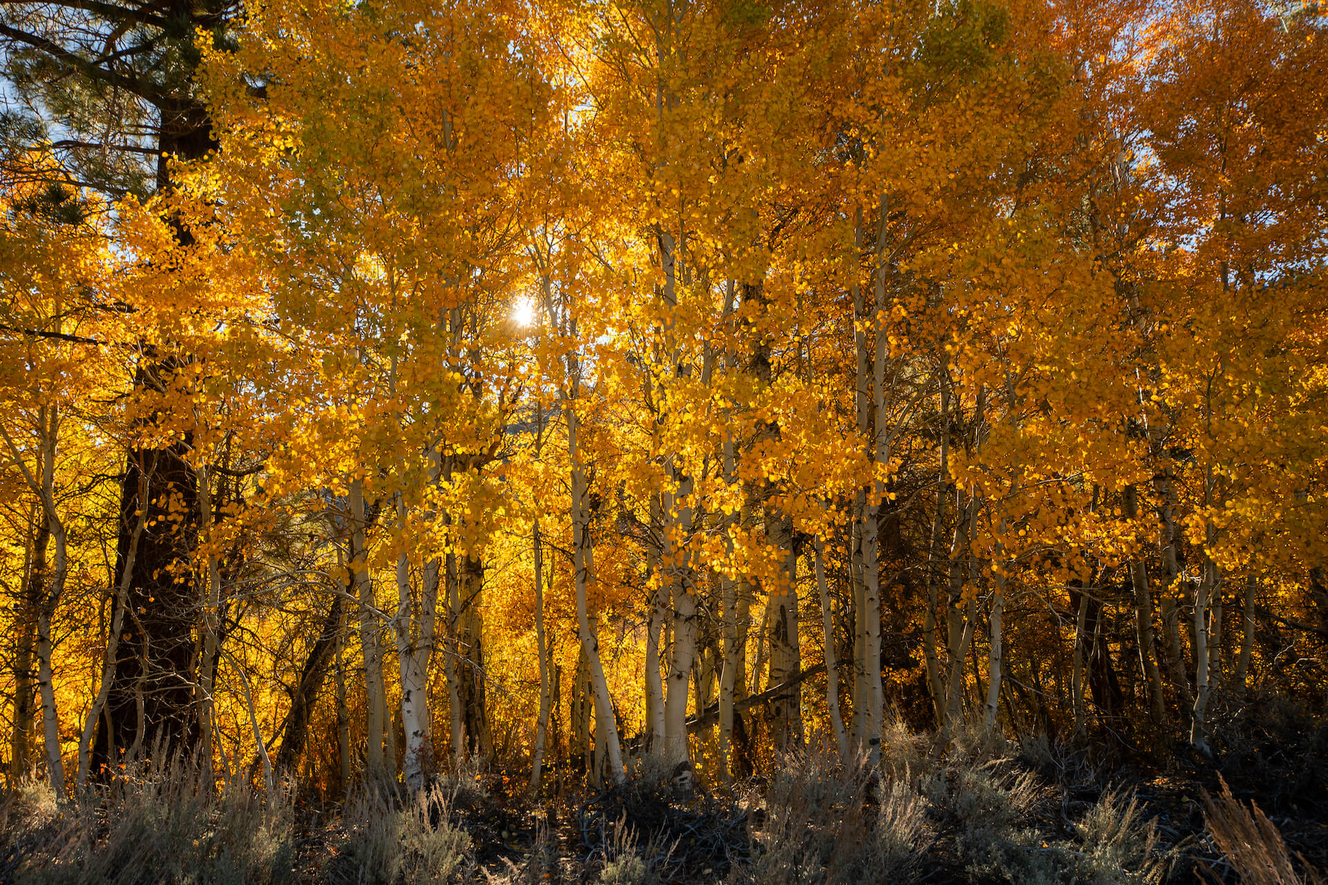 According to our friends at Mono County, in just five days, the trees that surround the campground sign when you first turn onto Poole Plant Road went from 50% green to full blown golden yellow. As you move up the canyon, trees are either golden yellow, orange or blown off, which puts this location at Peak, GO NOW! status.