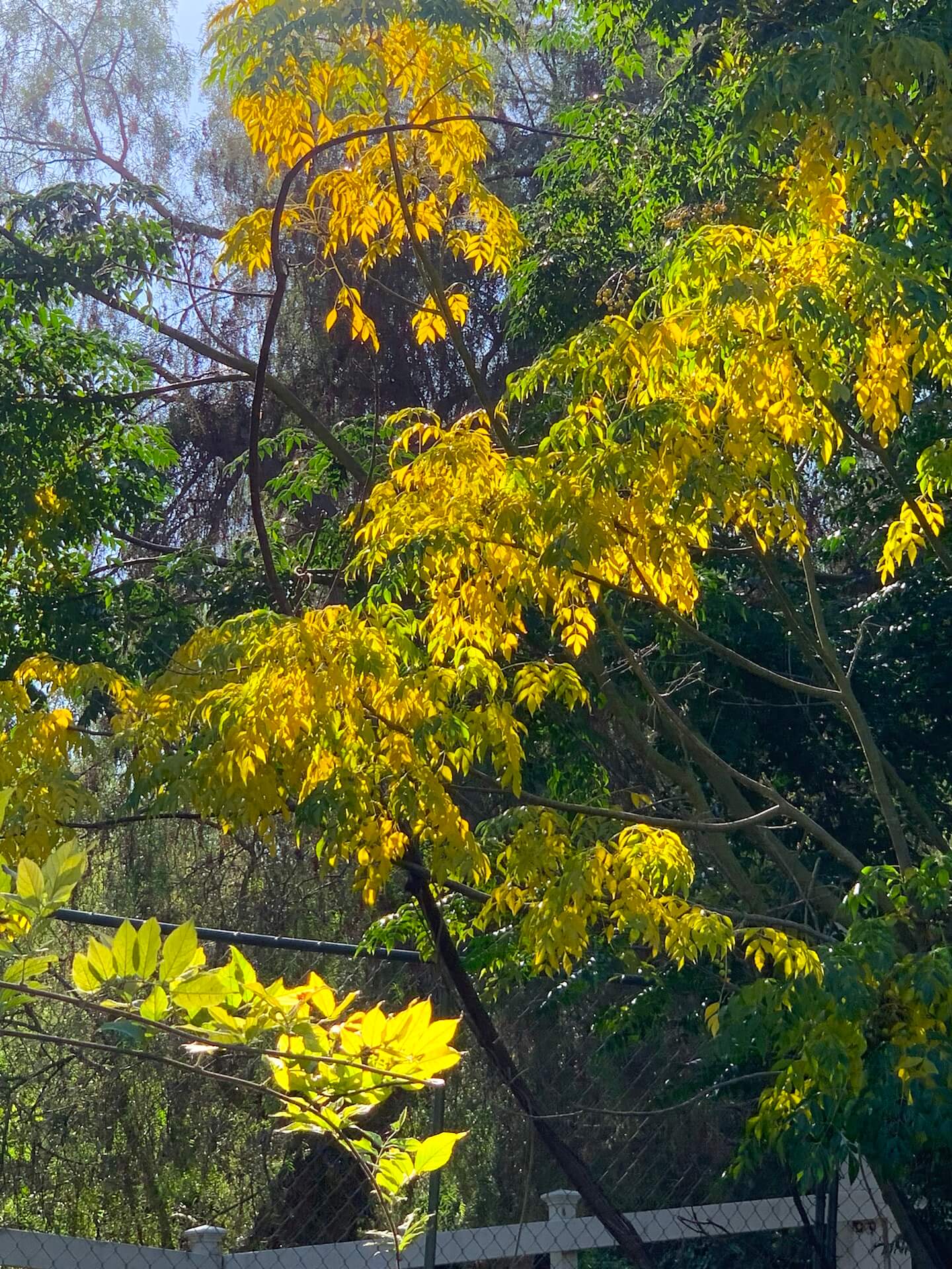 The yellow leaves against the bluish background were colorful in the afternoon sunlight.