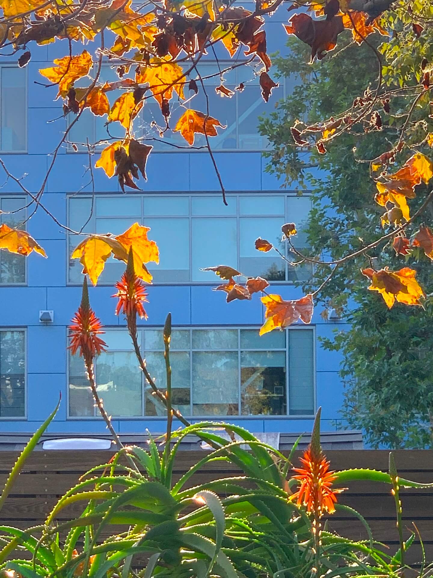 “The multicolor leaves of the trees in the courtyard of a building at Loyola Marymount University, Westchester campus, are fascinating. I stayed here for quite some time.”