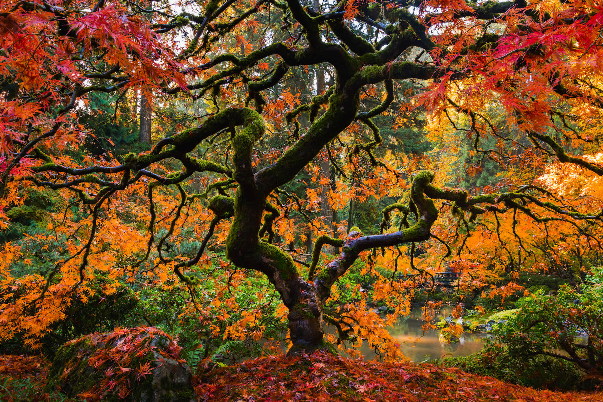 Yan, who is a pro at capturing autumn hues in urban forests did not disappoint, discovering peak colors in downtown Portland in addition to the Portland Japanese garden and Multnomah Falls.