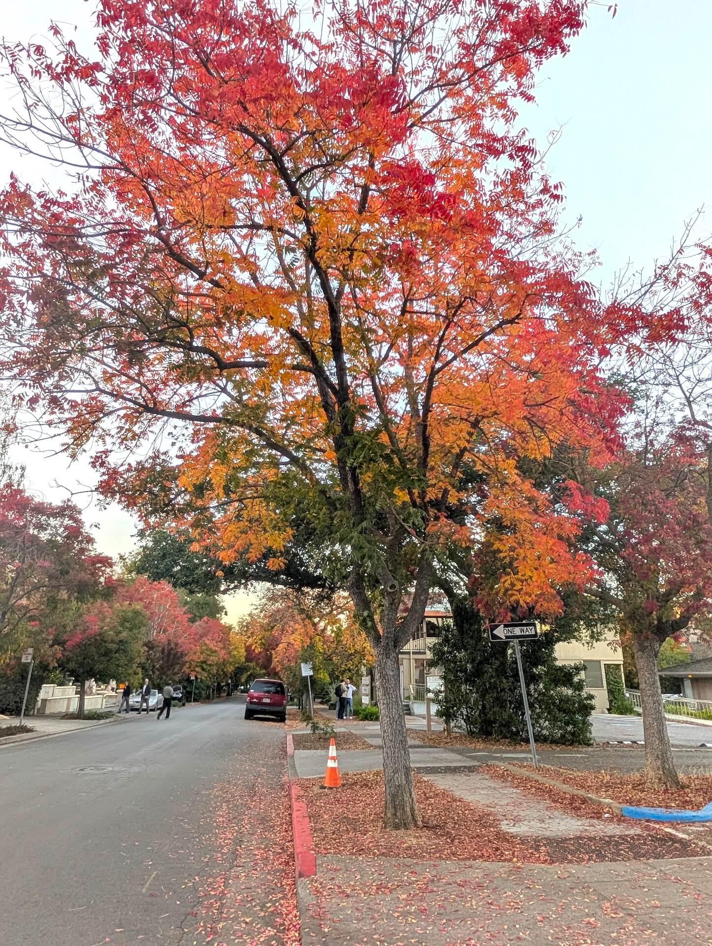 They noticed some vivid hues in the town of Los Altos where they estimated the colors are now in the range of 50-75%. Many of these colors are showing off in the beautiful reds of the Chinese Pistache trees.