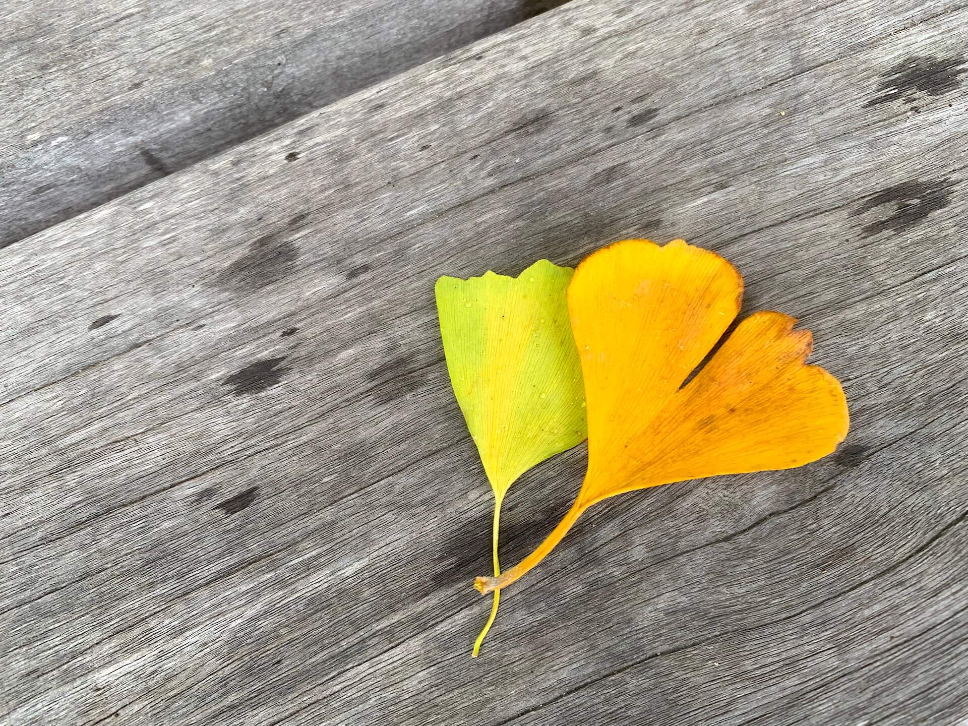 “I don‘t know why the Ginkgo trees undergo transitions with green and yellow leaves on the trees, and yet so many fallen leaves on the ground,” she pondered.